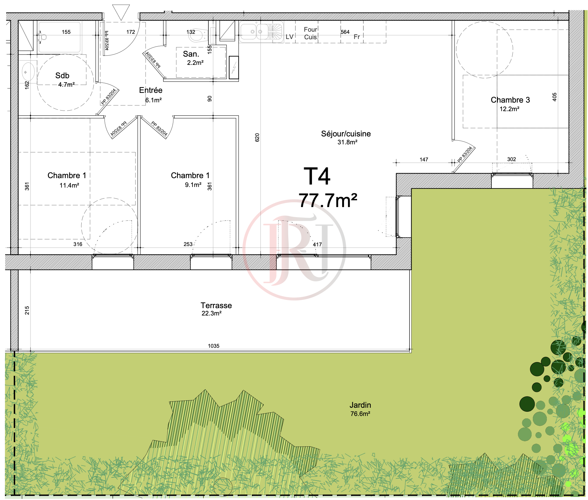 Appartement 4 pièces neuf avec terrasse et jardin