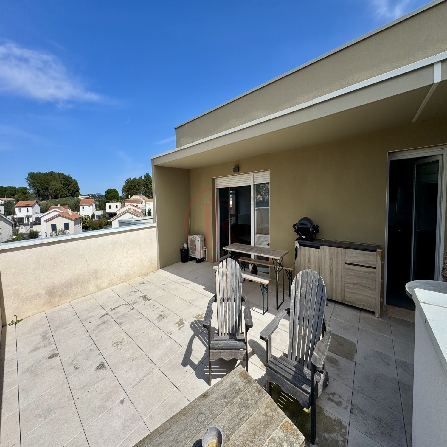 Canet en Roussillon, appartement T3 de 74 m² en R+1, salon séjour cuisine US lumineux avec sa terrasse de 26 m², résidence calme sur les hauts du village, proche des commerces, parking...